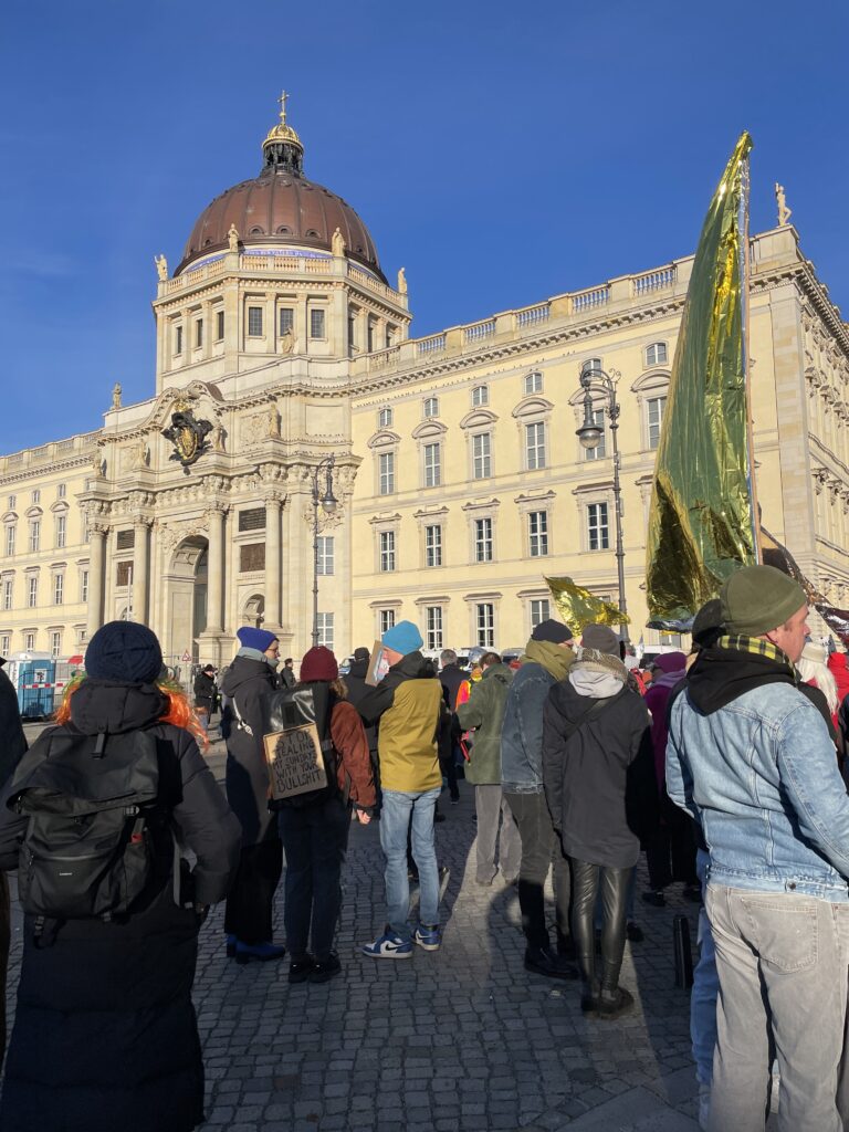 Für den 17.01.22 hatten wir in Tegel eine Gegendemo zu „Tegel steht auf“ angemeldet. Wir fanden bereits im Vorfeld zahlreiche UnterstützerInnen. Die lokalen Kreisverbände von Die Grünen, Die Linke, und der SPD, Mitglieder der IG Metall, der Jusos, von „Berlin gegen Nazis“ und von „Aufstehen gegen Rassismus“ hatten auf ihren Kanälen mobilisiert und waren mit dabei. Selbst eine kleine Antifagruppe sowie der Bezirksbürgermeister wurden später gesichtet: welch breites Bündnis!
