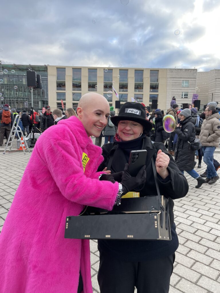 Vor der Bundestagswahl am 26. September gehen kleine Gruppen unserer OMAS in verschiedene Bezirke Berlins und verteilen dort an PassantInnen, mit denen wir ins Gespräch kommen und die Interesse zeigen, unsere Wahl-Broschüre. Wir möchten sie motivieren, rechtsradikale Parteien – und vor allem die AfD – nicht zu wählen.