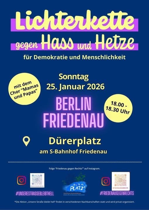 Eine Demonstration für Demokratie und Menschlichkeit am Dürerplatz (am S-Bahnhof Friedenau)
